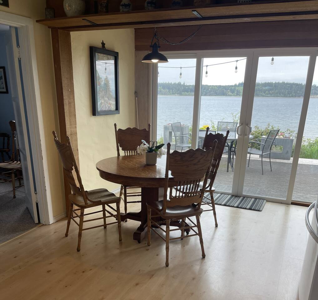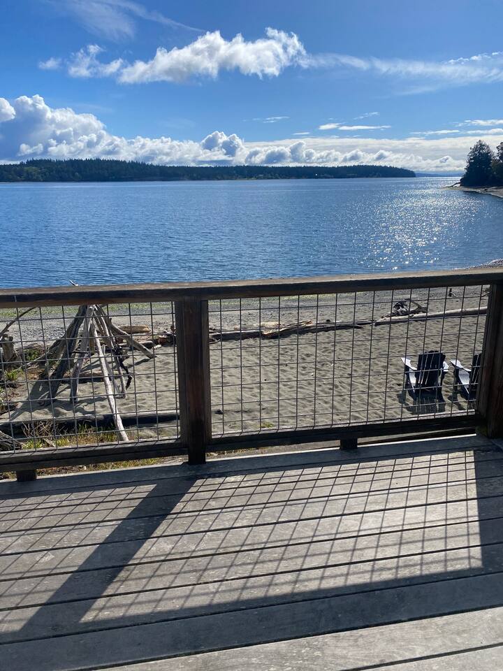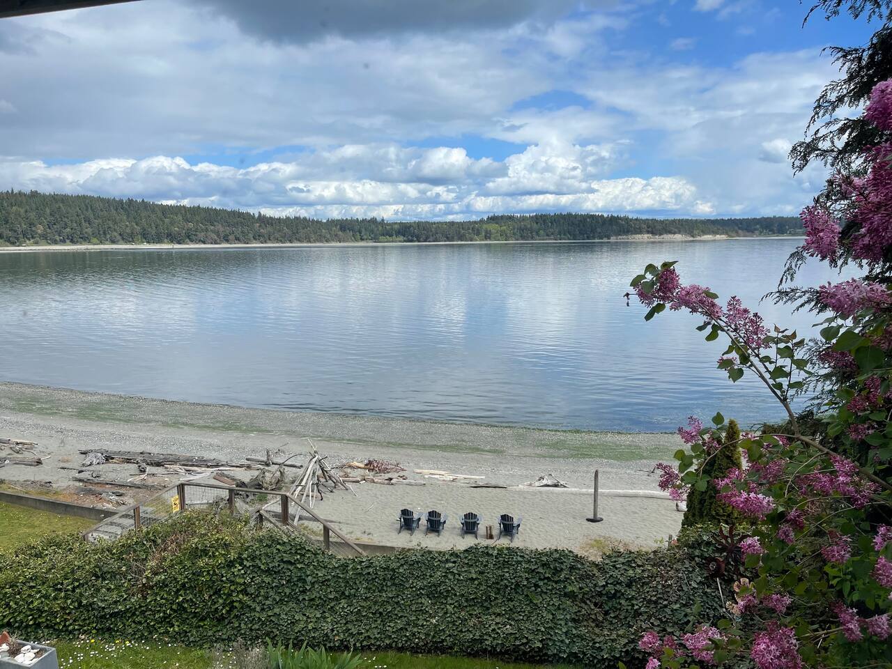 Welcome to a perfect place to get away from the busyness and relax! This cozy home has two bedrooms (each with a queen bed and one with an additional twin), one bathroom, a nice sized kitchen with dining area, and roomy living room. Off the kitchen is a double sliding door that opens to a large deck overlooking the bay, with a propane grill (May-Sept). Down a flight of stairs, you will discover a peaceful 12x12 deck where you can enjoy a cup of coffee in the morning or lunch on the picnic table. Down another flight of stairs will bring you to our fire-pit just a few steps from the beach where you can read a book or take long walk down the beach in either direction. At the far end is a county park and with the proper permits you can clam, fish and crab. Our view contains amazing sunrises, graceful eagles, seasonal seals, loons, osprey, occasional boat traffic and constant beauty. We are nestled from the weather in a quiet bay off the Puget sound. The house is stocked with games, puzzles, a few books, a TV in the living room, and WiFi for your devices. We hope you can come to enjoy a book, a s'more, a walk at low tide to see what lies under rocks, a game with loved ones and let stress melt away. There is an great restaurant (Ajax Café), 24-hour QFC, bagel shop, coffee and hardware store (for all your fishing needs) 5 minutes away. We are on the Olympic Peninsula so day trips to explore the mountains, pacific coast or rain forest are ideal. Two great retired naval forts are 10 and 20 minutes away, they are great places to hike, explore and enjoy yummy ice cream. Port Townsend is 20 minutes away with great shopping, more restaurants, farmers markets, festivals and theaters.